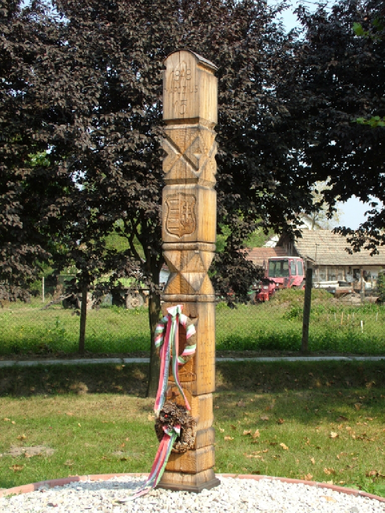1848. március 15-e emlékoszlopa A helyi képviselő testület állíttatta 2005-ben a Kossuth-címerrel és a település címerével díszített kopjafát. (Kósa Károly felvétele - VFMKMI)