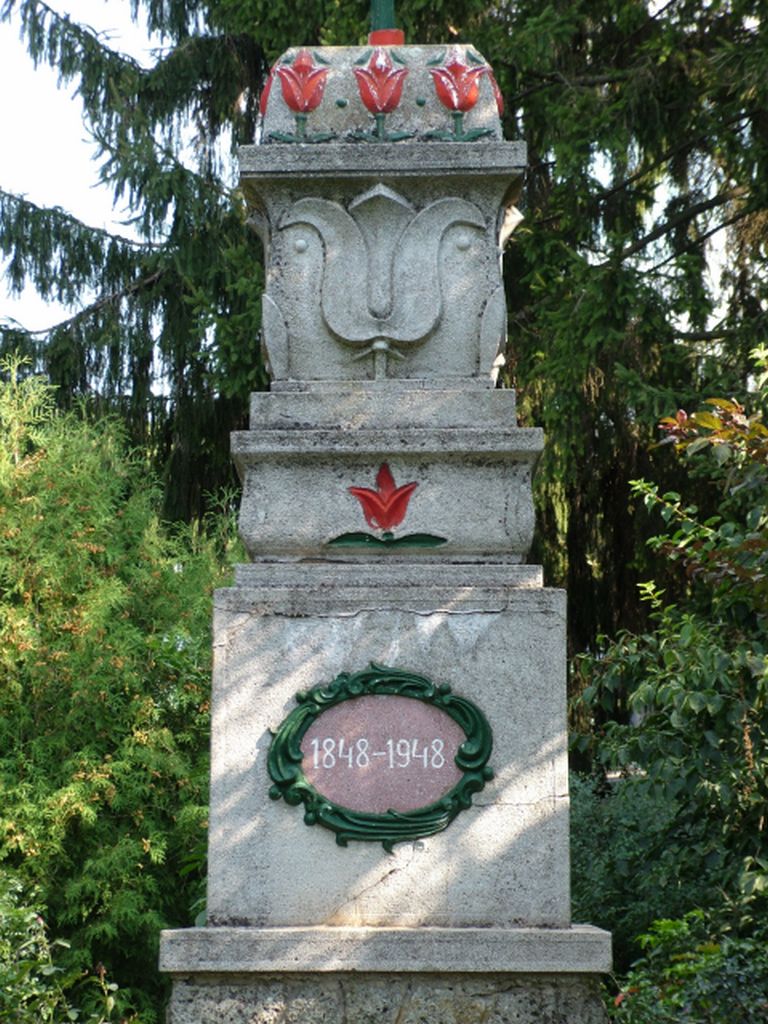 1848-49-es emlékmű A centenárium emlékére állította a község a zászlórúddal ellátott, festett díszítésű kőobeliszket. (Kósa Károly felvétele - VFMKMI)